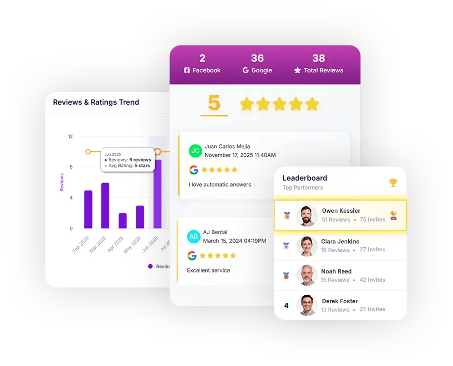 We work with a wide range of businesses that face the challenge of balancing service delivery with customer engagement. Home service companies such as plumbing, HVAC, and roofing, use our tools to stay responsive to leads and build stronger reputations. We also support other industries that need consistent communication, steady review growth, and reliable visibility to stay competitive.