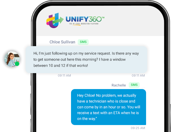 From a “Text Us Now” widget that makes it simple for customers to reach you, to reminders that flag unanswered chats, Unify360 is designed to keep your booking pipeline full. By consolidating communication, automating follow-ups, and elevating your reputation, our tools help house cleaning businesses convert more leads and retain loyal clients.